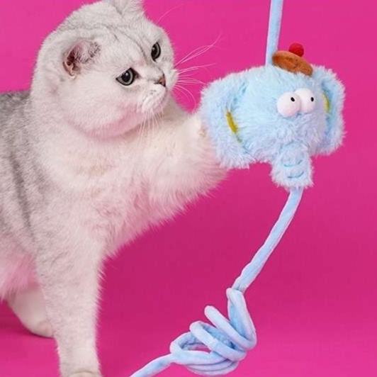 伸び縮みする紐の先にぬいぐるみが付いており、ロシアンブルーの狩猟本能を刺激する動きを生み出します。