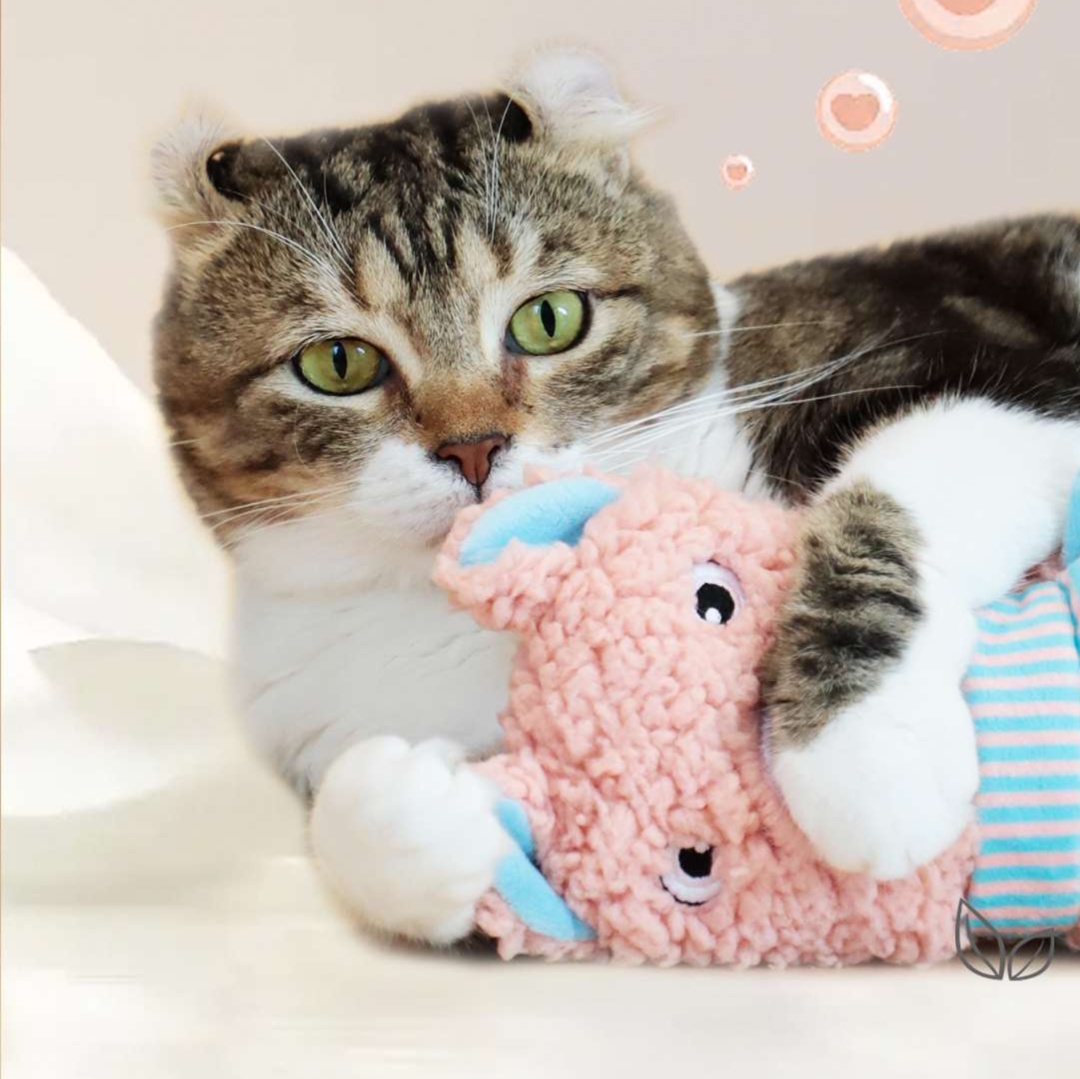 魚好きなロシアンブルーを虜にする、リアルな魚デザインのぬいぐるみじゃらしです。