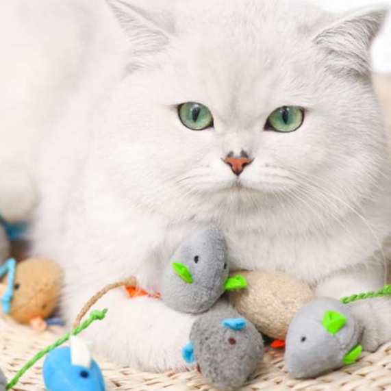 可愛らしい三色展開の電動ネズミぬいぐるみは、猫の狩猟本能を存分に刺激するおもちゃです。