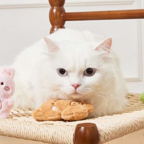 柔らかな布素材で作られており、猫が噛んでも安全性に配慮された設計です。