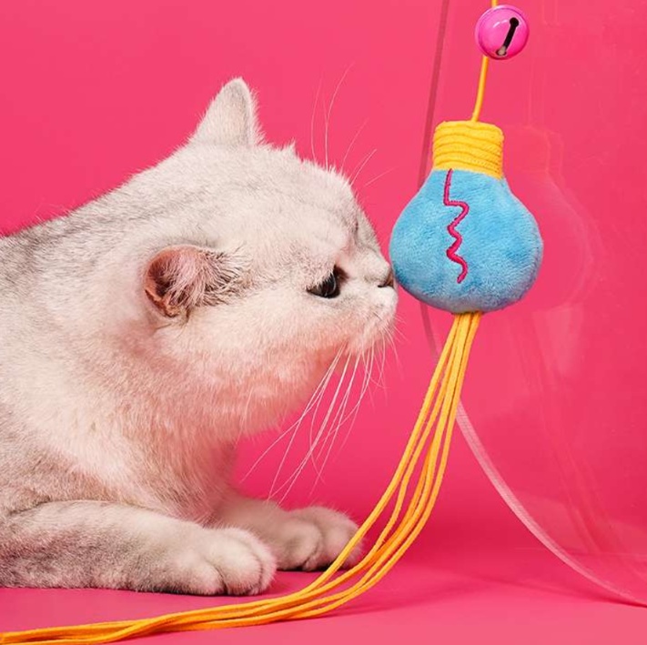 電球の形をしたユニークなデザインの猫じゃらしで、鈴の音が猫の興味を引きつけます。
