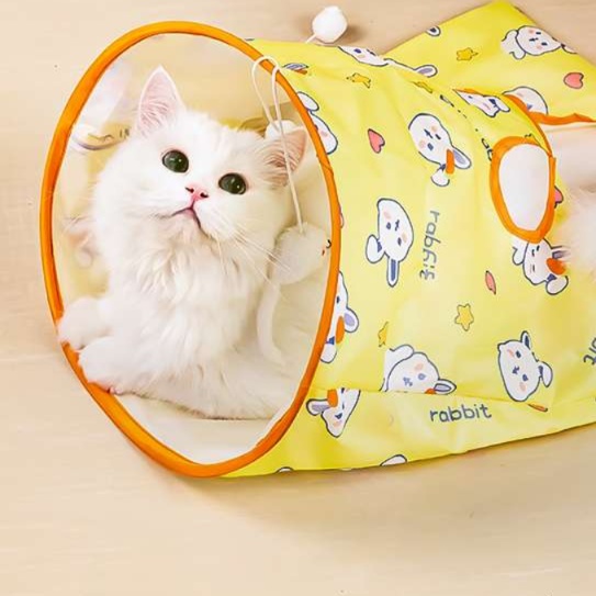 トンネル内には複数の入り口があり、猫が出入りを楽しめます。