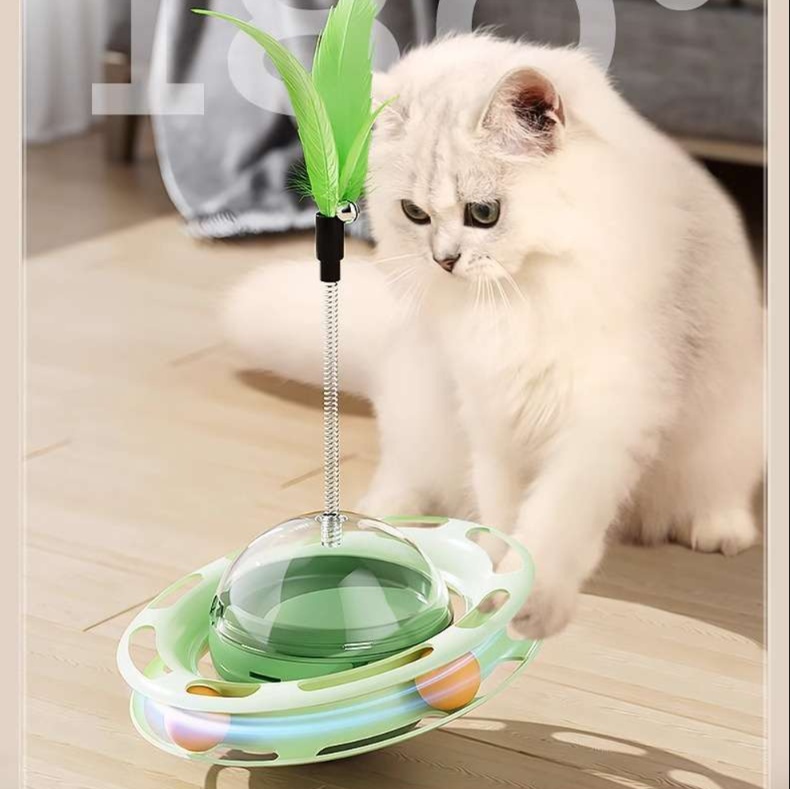 回転盤とじゃらし棒が一体になった、猫が飽きずに遊ぶことができるおもちゃです。