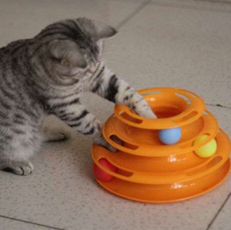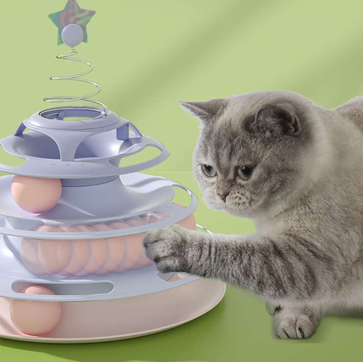 三段タワー型でボールを追いかけて遊ぶ猫用おもちゃ