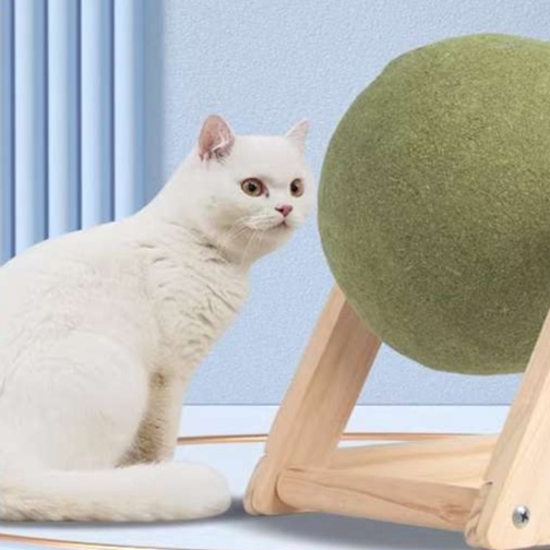 天然木を使用した猫のおもちゃボールは、噛むことで歯磨き効果も期待できる機能的なアイテムです。