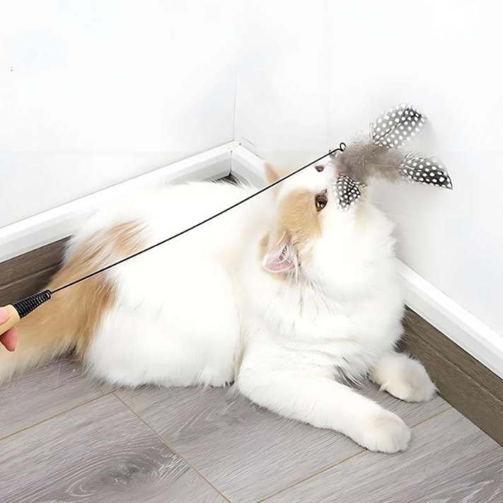 釣竿のような長い棒に羽根が付いた、飼い主と猫のインタラクティブな遊びに最適なおもちゃです。