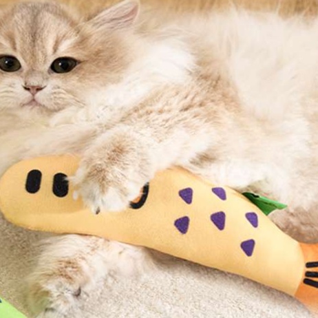 もちもちとした触り心地で、猫が抱きついたり蹴ったりして遊ぶのに最適です。
