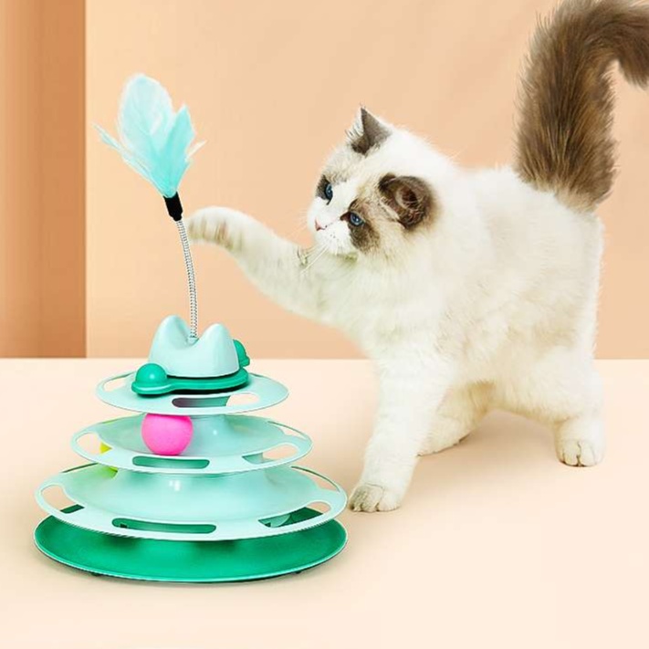 猫が水の中のボールを追いかけるくるくるタワー型おもちゃ