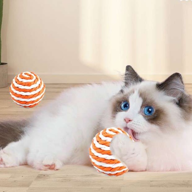 天然の麻素材を使用した猫のおもちゃボールです。