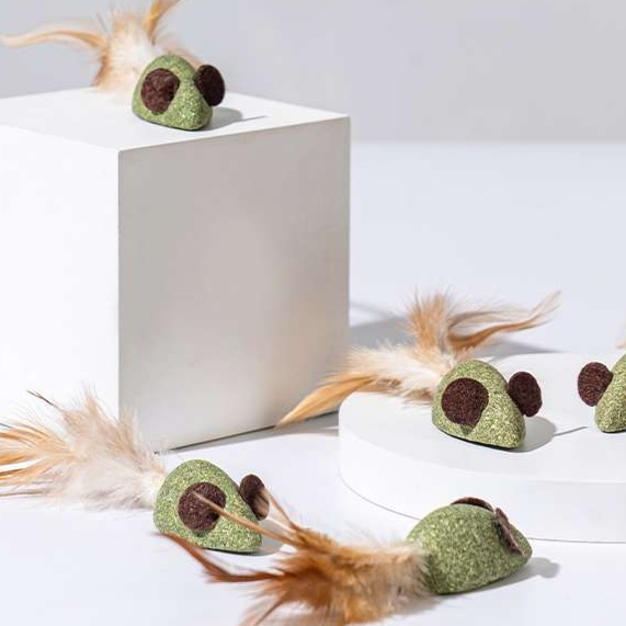 天然素材のネズミ型可愛い猫の人形おもちゃ