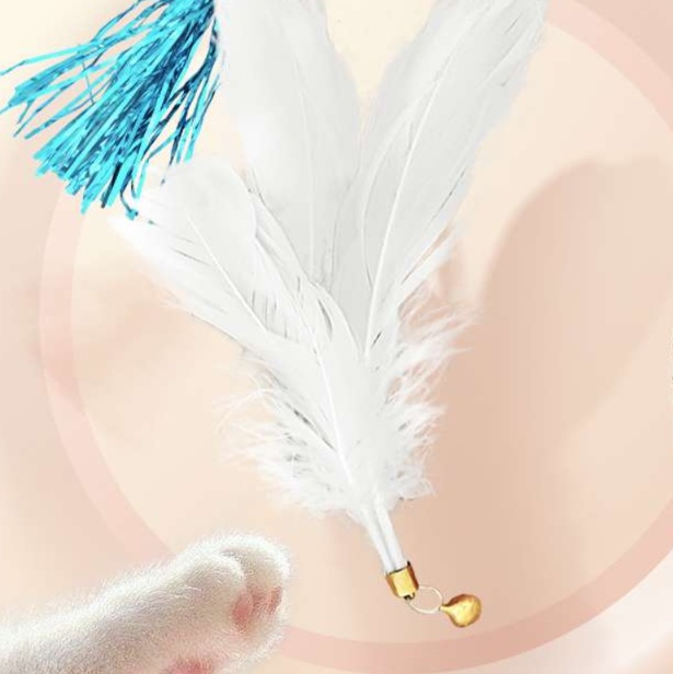 柔らかな白い羽根が揺れる動きで猫の狩猟本能を刺激