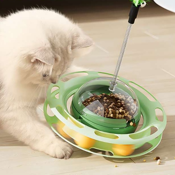 おやつを入れられる猫じゃらし、遊びながら愛猫の興味を引きつけます。キャットボールとフェザーが組み合わさり、猫の好奇心を刺激。おやつを獲得する楽しさが、運動不足の解消にもつながります。愛猫との絆を深める楽しいひとときを提供するアイテムです。