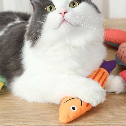 魚の形をした可愛らしいデザインで猫の興味を引く視覚的な魅力