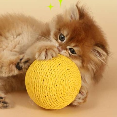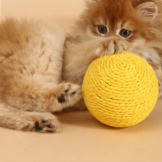 自然素材の紙縄を使用した直径10センチの猫じゃらし。猫ちゃんが興味を持ちやすいデザインで、遊ぶことで運動不足解消にも最適。軽量で扱いやすく、飼い主との楽しいひとときを演出します。愛猫との絆を深めるための必需品として、ぜひお試しください。