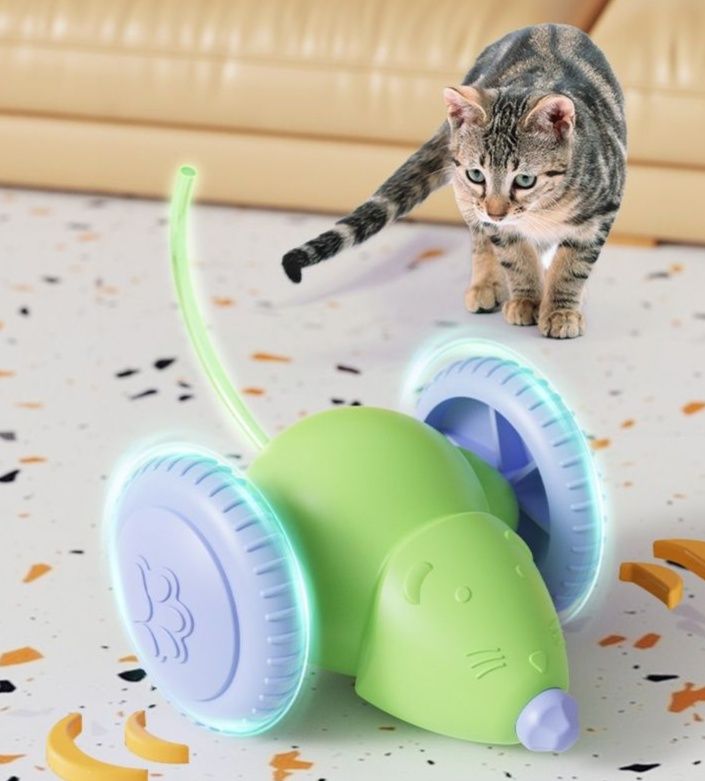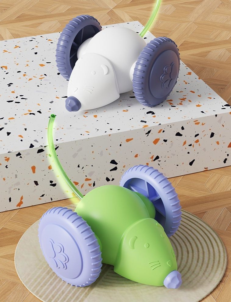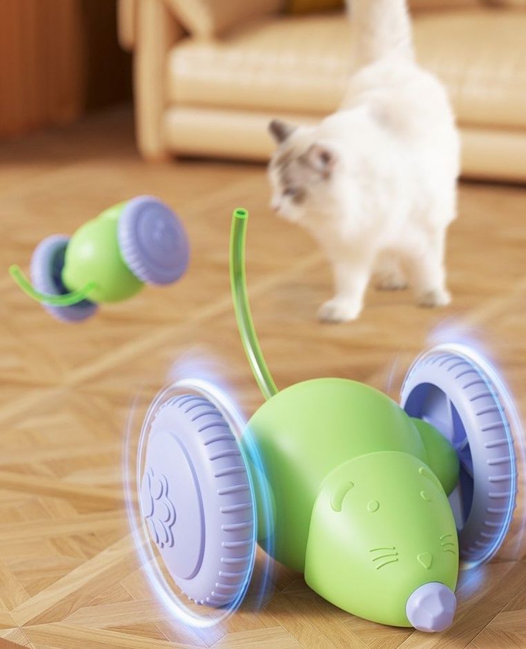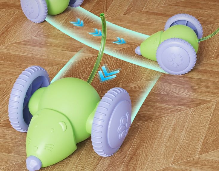 障害物を感知すると自動で方向転換するネズミおもちゃで、予測不能な動きが愛猫を夢中にさせます。
