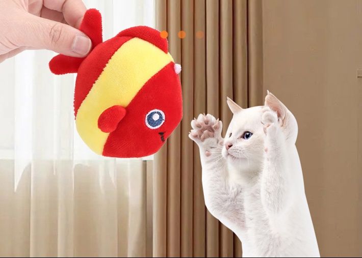 かわいい表情の魚型デザインが猫の遊び心をくすぐり、運動不足解消にも最適です。