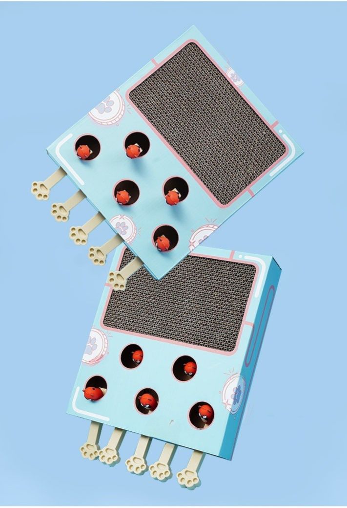 複数の穴から予測不能に現れるおもちゃに夢中になり、室内飼いの猫ちゃんの日々の運動量をしっかり確保できる知育玩具です。