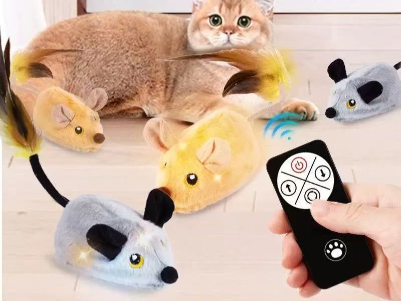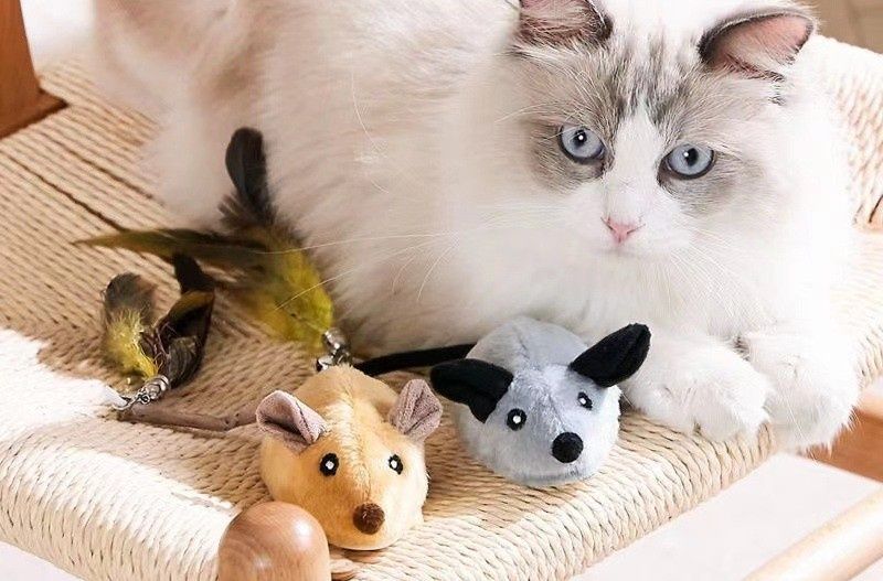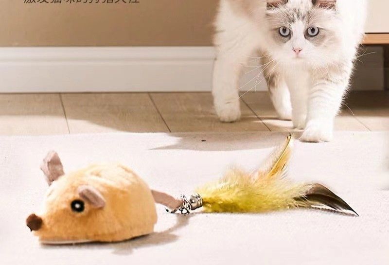 ふわふわの羽根付きで視覚的にも魅力的なネズミおもちゃは、運動不足解消に最適です。