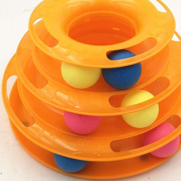 複数の層で構成された円形トラックが、猫の好奇心を刺激する知的な遊び環境を提供