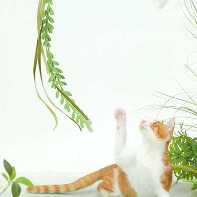 リアルな葉の形状と揺れ方で猫の狩猟欲を引き出します