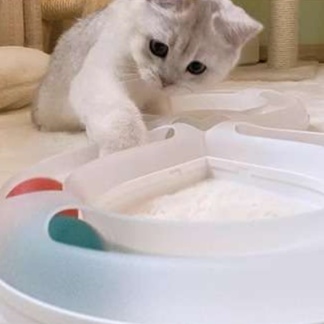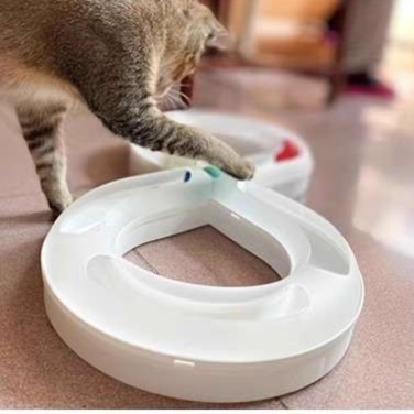猫の知育を促進する8の字型の軌道を持つおもちゃ、玉が転がる様子で遊び心をくすぐります。中央には猫じゃらしが配置され、愛猫の好奇心を刺激し、楽しい知育体験を提供します。遊びながら思考力や運動能力を育むことができる、理想的なアイテムです。