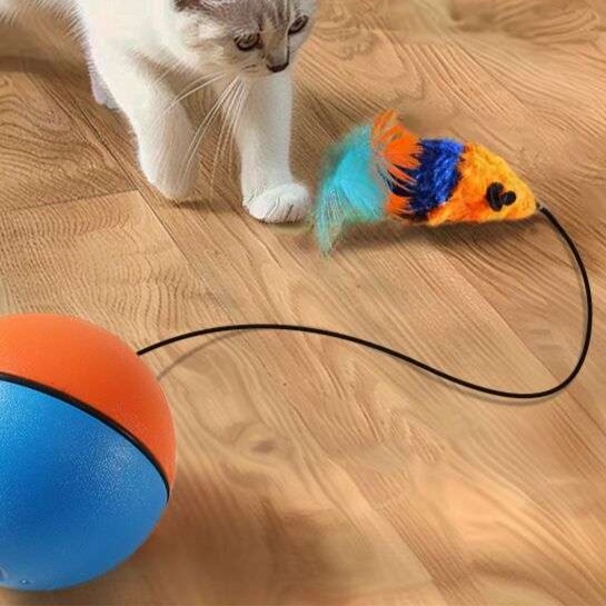自動で動く羽根付きネズミが猫の狩猟本能を引き出し夢中になって遊べる