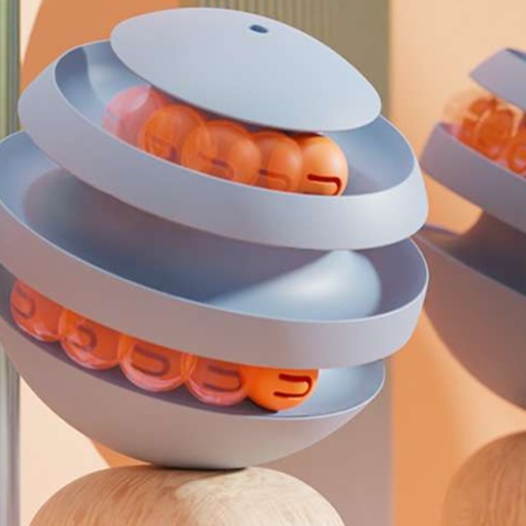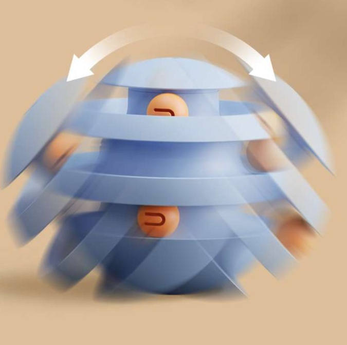 ボール型の本体に施された三層の溝が、猫の好奇心を引き出す工夫された設計