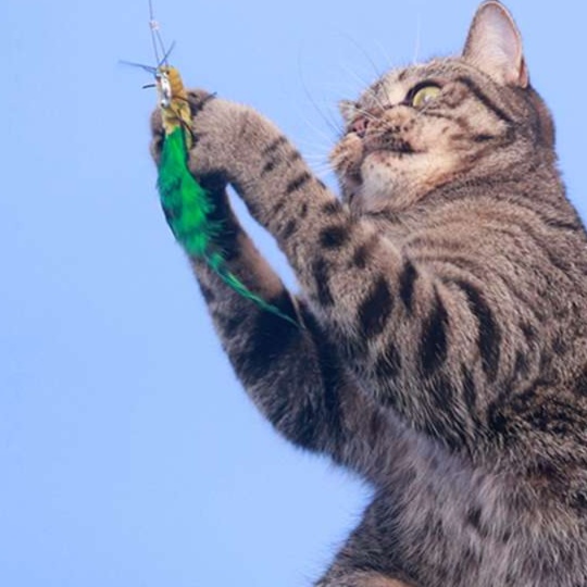 猫の本能を引き出す昆虫型の猫じゃらし。軽やかな羽根と細い糸が生み出す繊細な動きに、愛猫は夢中になること間違いなし。遊びながら自然に運動不足を解消でき、爪とぎ防止にも役立つ優れたアイテム。おうちの中で楽しくアクティブな時間を提供し、健康的な生活をサポートします。