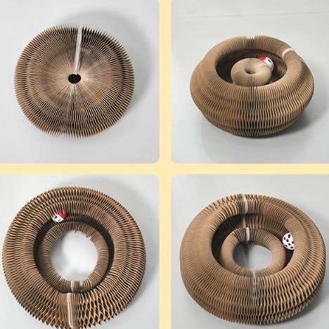 立体的な渦巻き状の通路で、ボールを追いかける猫の狩猟本能を刺激