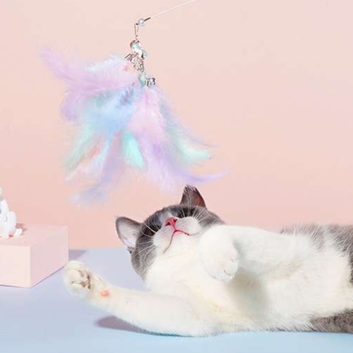 蓮松柔らかな羽毛が優美な動きを演出し、猫の狩猟本能を刺激