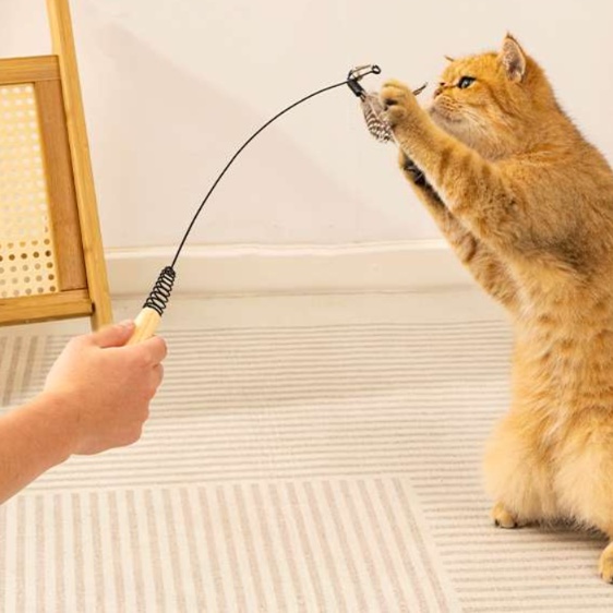 耐久性に優れたスプリング構造を採用した猫じゃらし。猫の好奇心を刺激する羽根付きデザインが特徴で、遊び心を引き立てます。愛猫との楽しい時間を演出し、運動不足解消にもぴったりなアイテムです。猫おもちゃの定番として、長時間の遊びをサポートします。お部屋での遊び時間をより充実させるための必須アイテムです。