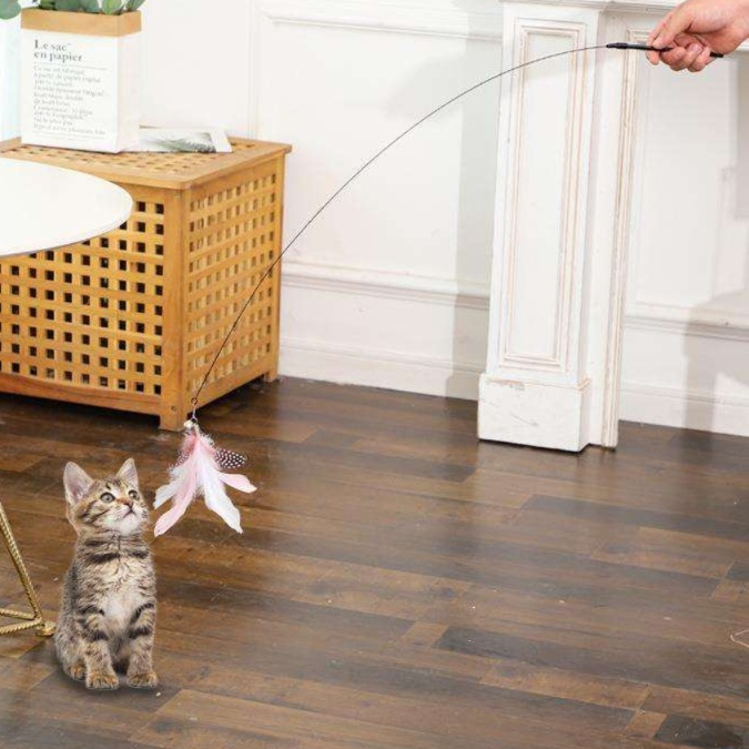適度な長さの竿で扱いやすく、猫との距離感を保ちながら遊べます