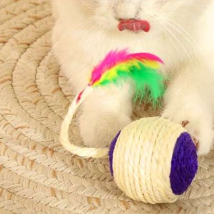 天然素材を使用した猫じゃらしは、運動不足解消にぴったり。カゴ状の編み目と鈴の音が猫の好奇心を刺激し、カラフルな羽根が視覚を楽しませます。耐久性に優れたこのおもちゃは、遊びながらストレスを軽減し、健康的な運動を促進します。愛猫との楽しい時間を提供する、必須アイテムです。