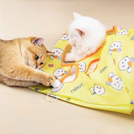 猫ちゃんの遊び心を引き立てる、愛らしいうさぎ柄のトンネル型猫じゃらし。出入り口が複数あり、探検気分を満喫できます。軽量設計で広げやすく、遊び終わった後はコンパクトに収納可能。楽しい時間を提供するこのおもちゃは、猫のおもちゃの必需品です。遊びながら運動不足も解消できる優れもの。